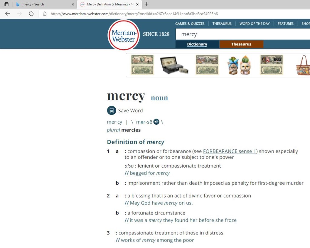Mercy is one of those words that holds a certain esteem for the definitions according to Merriam Webster resembles a sacred complexity. One of the definitions is that mercy is “a blessing that is an act of divine favor or compassion.” Let us reflect on the definition and sacred aspect of Mercy as Christians this week in which the Son of God showed mercy to us that have fallen away from His grace each time we sin against God and our fellow man/woman.