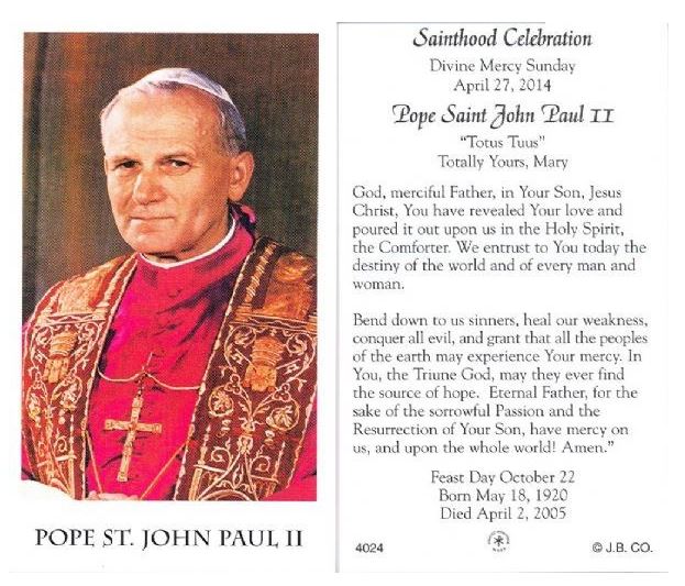 May the Lord bless us, protect us from all evil and bring us to everlasting life. St. Pope John Paul II, pray for us and look upon us this day as we strive to do His will. Amen.